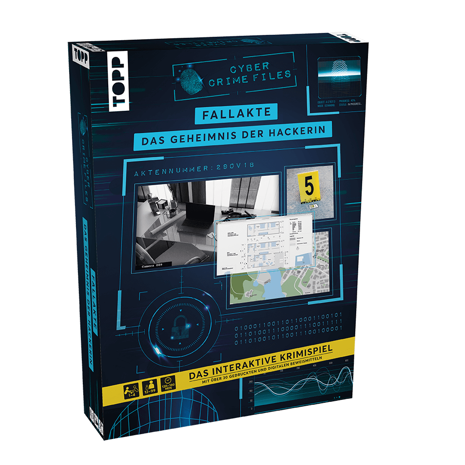 Physische Beweismittel in der Box treffen auf digitale Untersuchungen: In diesem spannenden Krimi sind die Spielenden auf der Jagd nach einem Verbrecher. Dabei müssen sie sich sowohl in Webseiten hacken als auch die mitgelieferten Beweisstücke genau untersuchen.