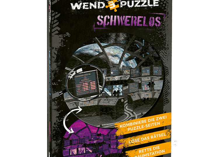 Beim Wendepuzzle wird zunächst ein rundes Puzzle zusammengesetzt, bevor eine Vielzahl von Rätseln entlang einer sich stetig fortentwickelnden Geschichte gelöst werden. Der Clou: Im Spielverlauf kann das Puzzle mithilfe des mitgelieferten Puzzle-Wenders gedreht werden, was selbstverständlich auch von Rätselmechaniken ausgenutzt wird.